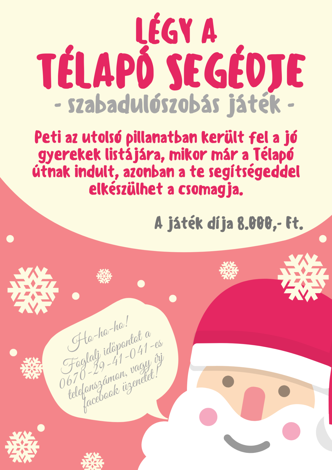 A játék díja: 2fő részére 5.000,- Ft